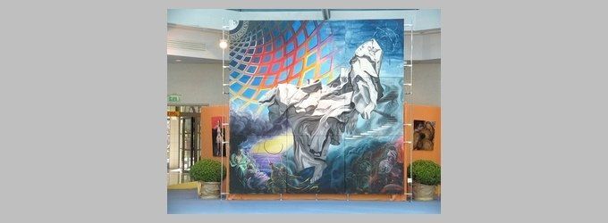 His guests created a fresco on the theme of Greek mythology on site in GreecGroup work on the same canvas