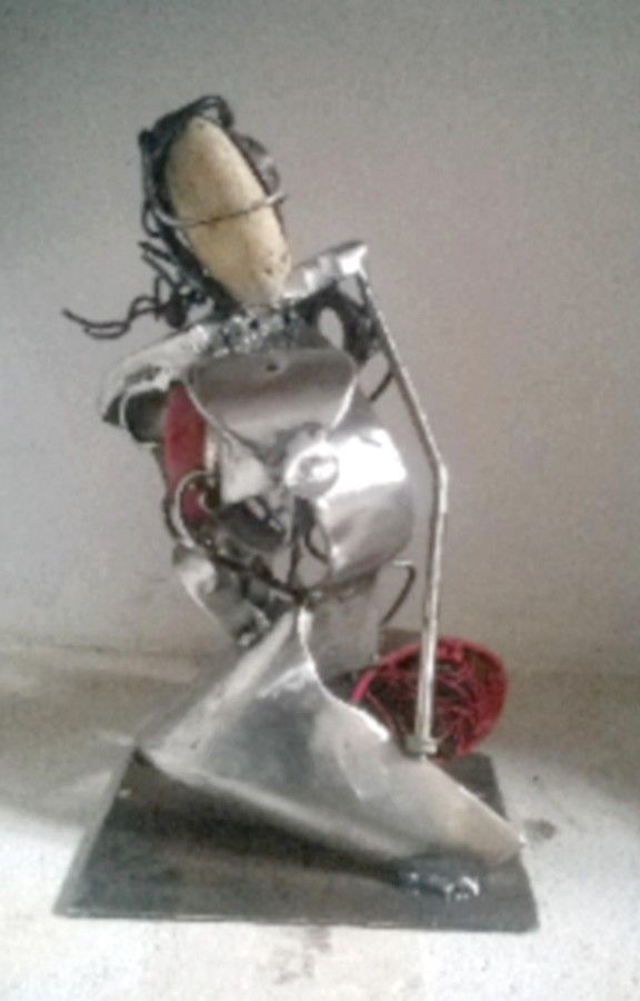 Working as well with tropical wood from the Sahel or the coast of the Gulf of Guinea as with saponin stone harvested in my father's village, I started by sculpting small “tourist works”. I want to find the spirit and wisdom of my ancestors through Art. I do an artistic research of more personal works, trying to transform the material, giving it a body, a spirit... and above all a wisdom... Playing with the raw mass of the material, the size and the polishing, wisdom makes its way in a sparse setting, perhaps in the image of our world...