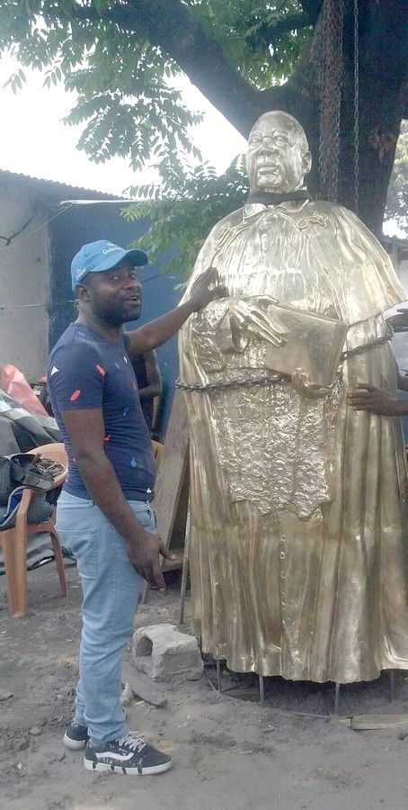 Je suis un artiste qui s'adapte à toutes sortes de supports, pierre, bronze, bois, fer... Je forge un art spécifiquement moderne mettant en lumière un art congolais purement inspiré de ma culture maternelle.