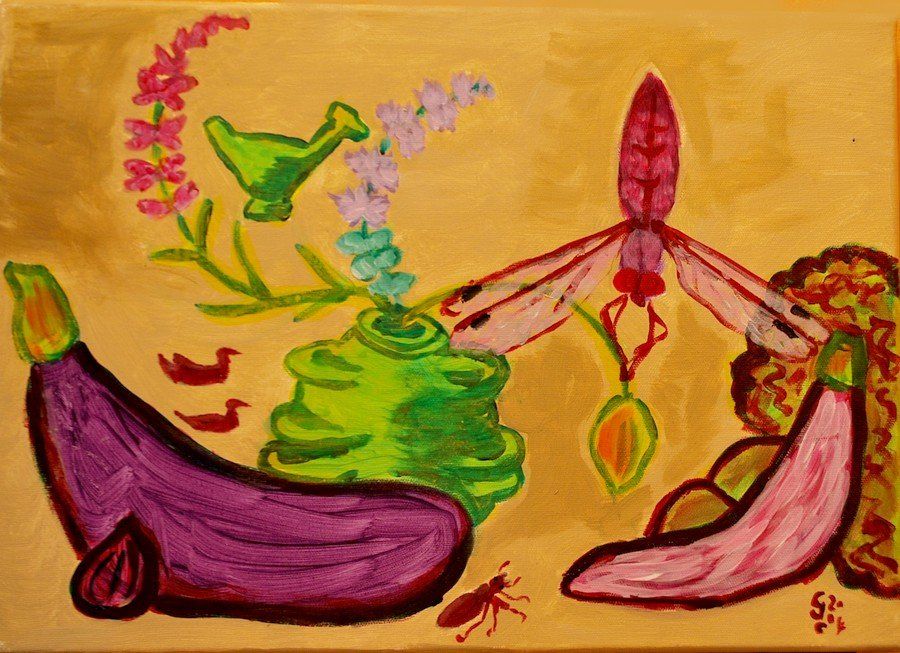 We are not used to looking at naive paintings representing vegetables or insects when they are not stylized mountains, this is what makes the originality of this artist and promises a bright future. An exhibition to visit during your walks that will not fail to attract your attention.