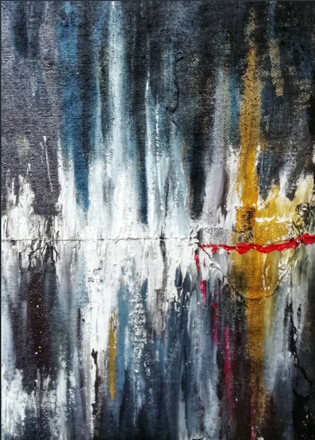 My works are composed of several materials, such as clay, putty, sand and anything that can create thickness. I want thickness because I think the unconscious must express itself at a level higher and thicker than the simple two-dimensional canvas. I like to explore the possibilities offered by different materials such as clay, raw jute, used without primer, or wood waste and anti-rust paint. I want my paintings to be touched, explored and known not only with the eyes, but also with the touch, so that one can come into contact with the interior elements that are there. The painting becomes a kind of point of encounter between exterior and interior dimensions, the greater the urgency of the expression, the greater the thickness.