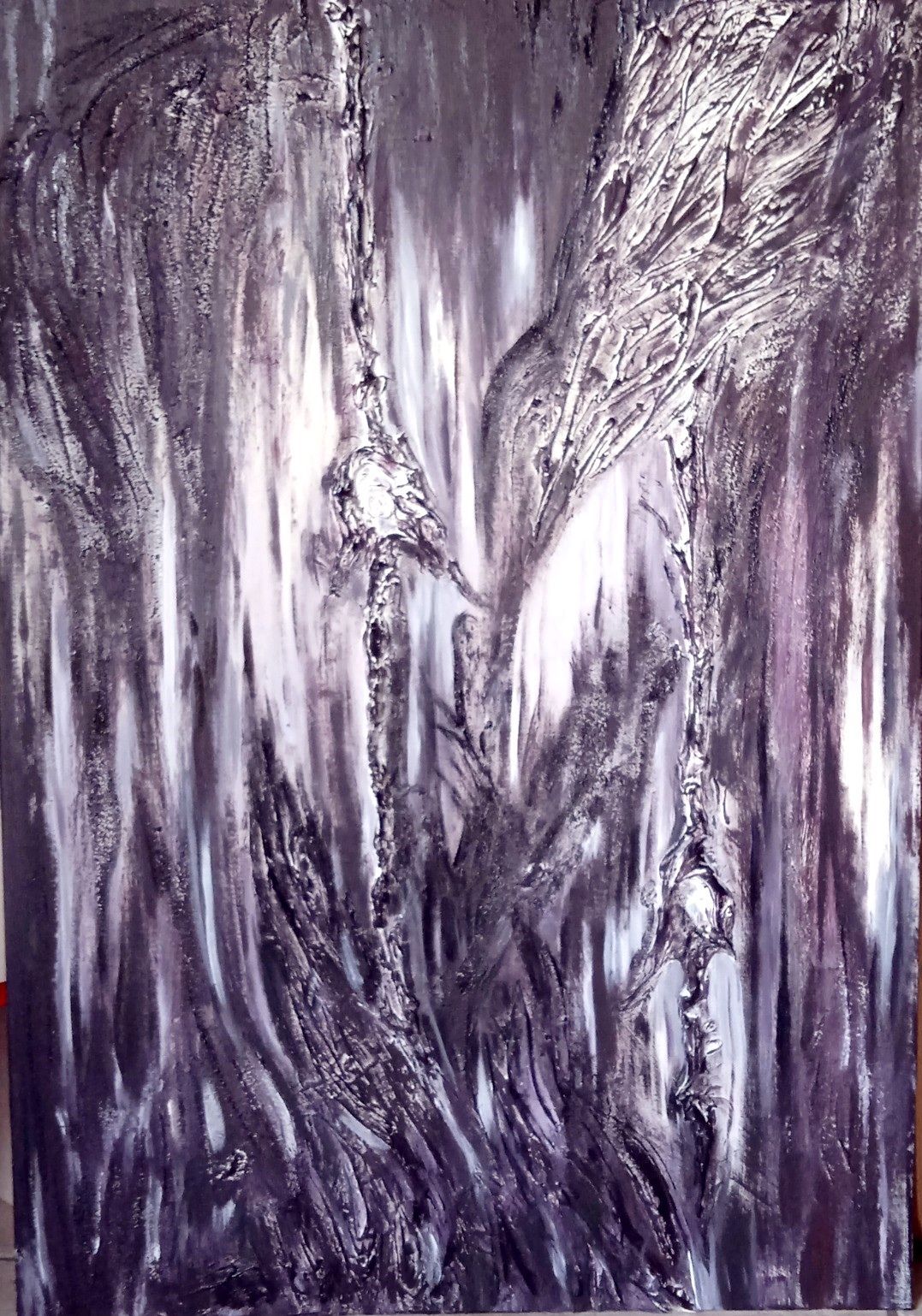 Mes œuvres sont composées de plusieurs matières, telles que l'argile,lemastic, le sable et tout ce qui peut créer de l'épaisseur.Je veux de l'épaisseur parce que je pense que l'inconscient doit s'exprimer à un niveau plus élevé et plus épais que la simple toile bidimensionnelle. J'aime explorer les possibilités offertes par différents matériaux comme l'argile, la jute brute, utilisée sans apprêt, ou les déchets de bois et la peinture antirouille. Je veux que mes peintures soient touchées, explorées et connues non seulement avec les yeux, mais aussi avec le toucher, afin que l’on puisse entrer en contact avec les éléments intérieurs qui s'y trouvent.La peinture devient une sorte de point de rencontre entre les dimensions extérieures et intérieures, plus l'urgence de l'expression est grande, plus l'épaisseur est grande.